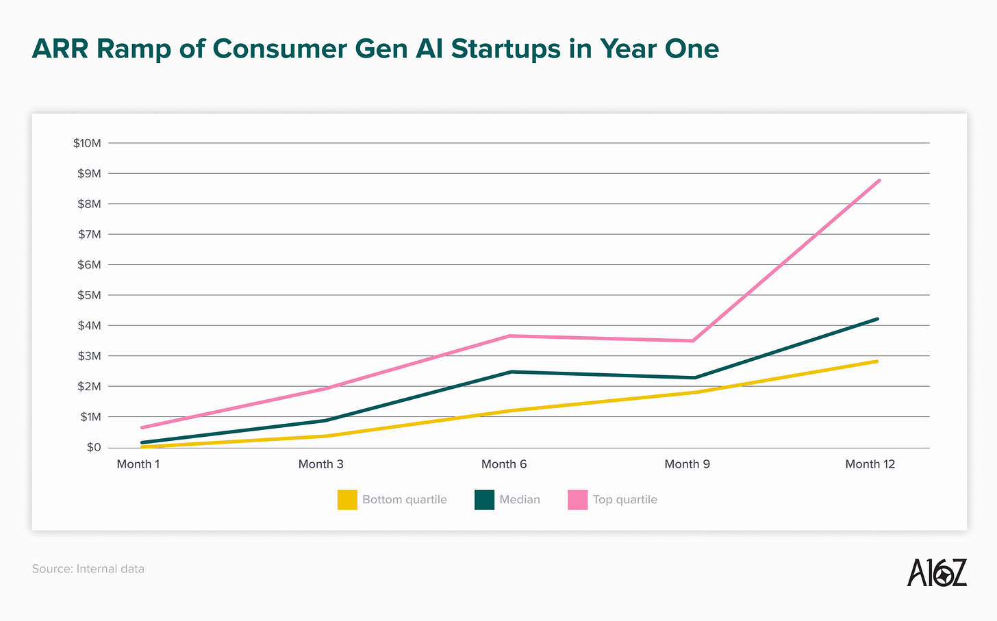This blog post about AI startup growth benchmarks reveals that median AI companies today are growing much faster than their pre-AI peers, with enterprise startups reaching over $2M ARR and consumer startups $4.2M ARR in year one—driven by faster product cycles, strong user demand, and even B2C companies emerging as serious, revenue-generating businesses.