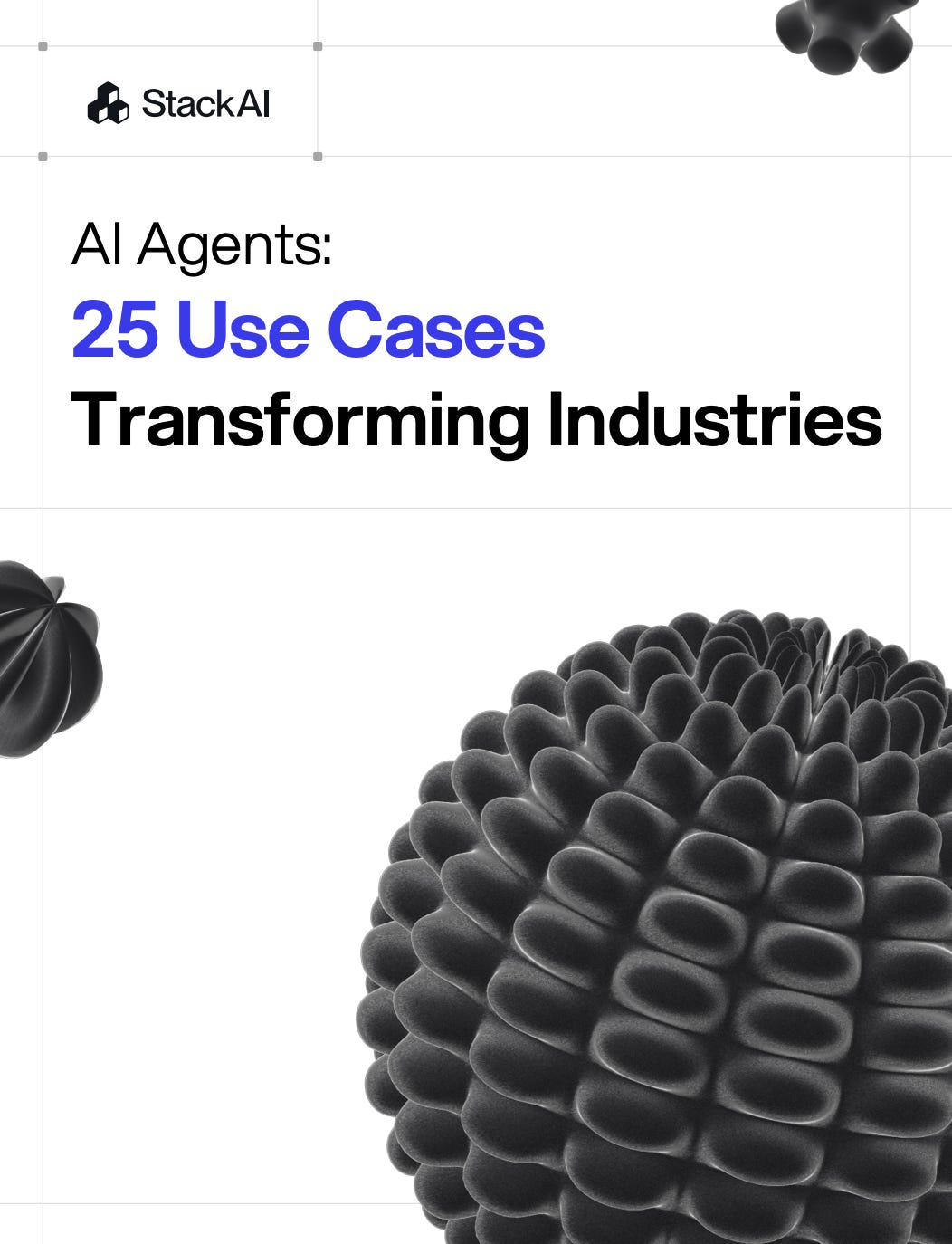 This white paper from StackAI details 25 distinct use cases for AI agents across industries like finance, healthcare, and operations. It explains how AI agents work, their differences from chatbots, and provides specific examples of how they are used to automate complex tasks such as investment memo generation, patient report creation, and competitive analysis.