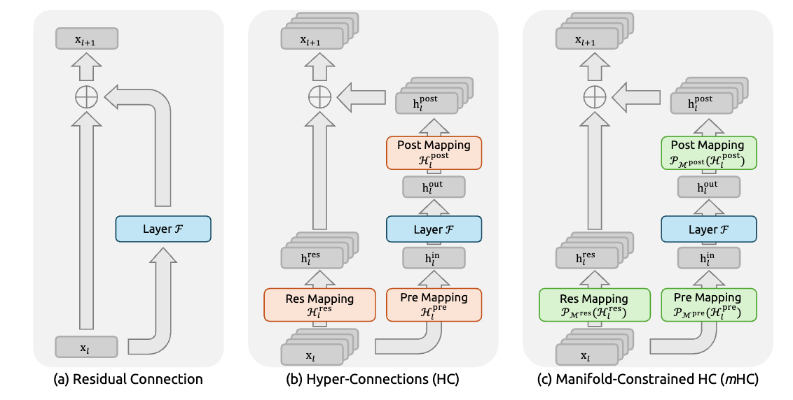 In their paper mHC: Manifold-Constrained Hyper-Connections, researchers from DeepSeek focus on fixing exactly this problem. Instead of proposing a new model or more data, they improve one of the most basic building blocks of neural networks: the residual connection. That small change turns out to matter a lot at scale.