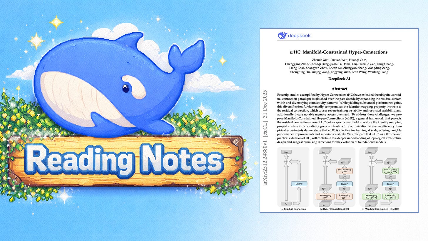Reading notes: mHC: Manifold-Constrained Hyper-Connections (DeepSeek) 🐋